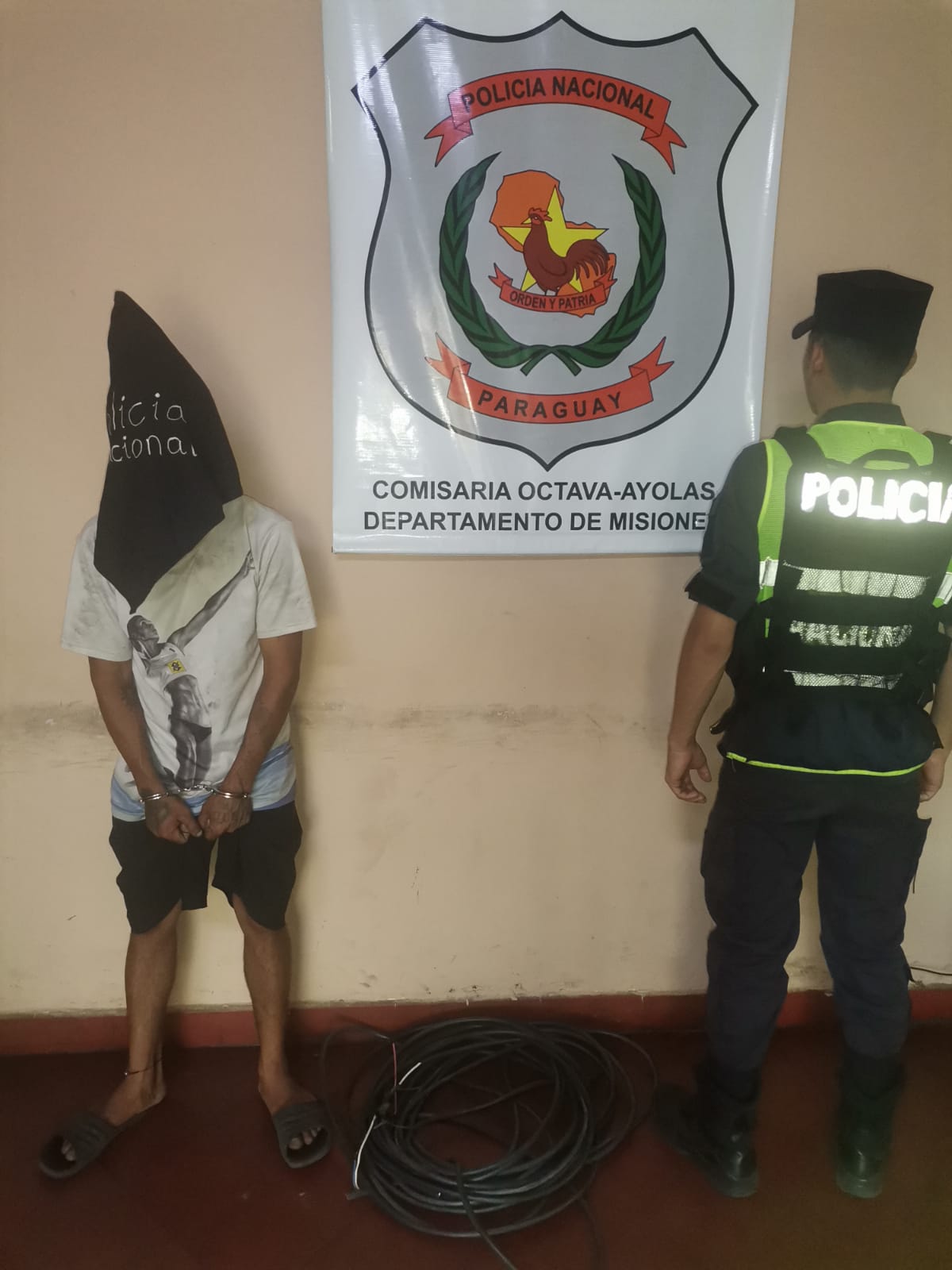 Efectivos de la Comisaría 8ª de Ayolas detuvieron ayer 28 de noviembre, a Juan Ramón Acosta, de 31 años, quien cuenta con antecedentes por hechos similares, en el marco de una investigación por la sustracción de materiales pertenecientes al alumbrado público.