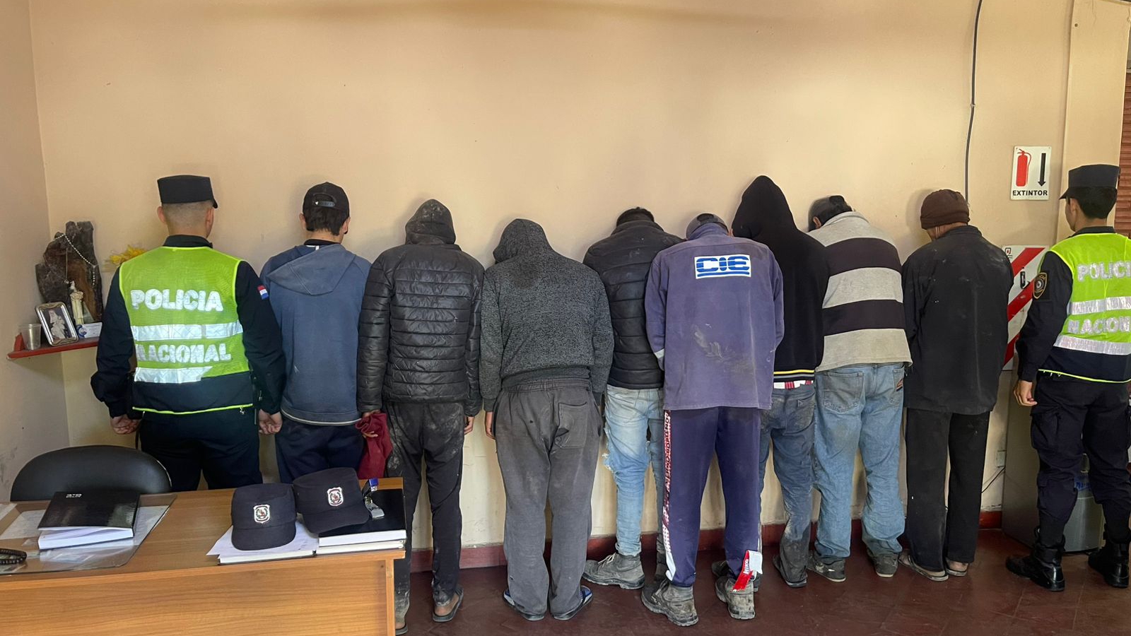 Fueron aprehendidos, Ángel Rodrigo Jaquet Espínola, 27 años, del barrio Coeyú; Mario Pablo Aguirre Rotela(19); Pedro Noel Acosta Aquino (21); Ernesto Ariel Acosta Aquino(23); Francisco Javier Aquino (19); Ramón Alfredo Alvarenga Galeano(48); Natividad Aquino(50); Adriano Adelio Aquino Aguayo (31), y Eduardo Ojeda Sánchez, de 45 años, del barrio Coeyú – con orden de captura por abigeato (ID N.º 460/2016).