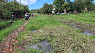 La vecina relató que, en días de lluvia, deben cargar a sus hijos hasta una calle empedrada ubicada a unos 160 metros de sus viviendas para que puedan asistir a clases. Agregó que, aunque el municipio realizó trabajos de canalización, las aguas pluviales se acumulan por falta de desembocadura, provocando desbordes que inundan caminos y viviendas.